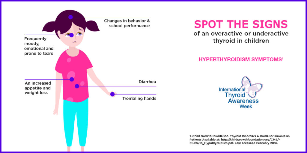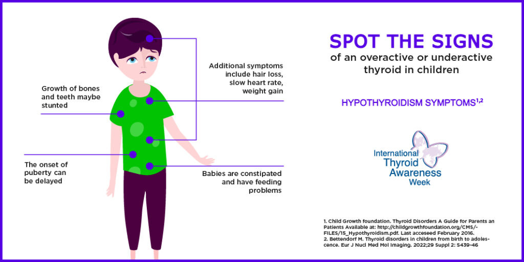 Thyroid hormones play a very important role in healthy growth and development during childhood, impacting metabolism, the nervous system and organ functions.1 Therefore, it is vital that parents understand the signs and symptoms of thyroid disorders. It is also important to remember that treatments are available and that early intervention will help to avoid any long-term issues or complications.1