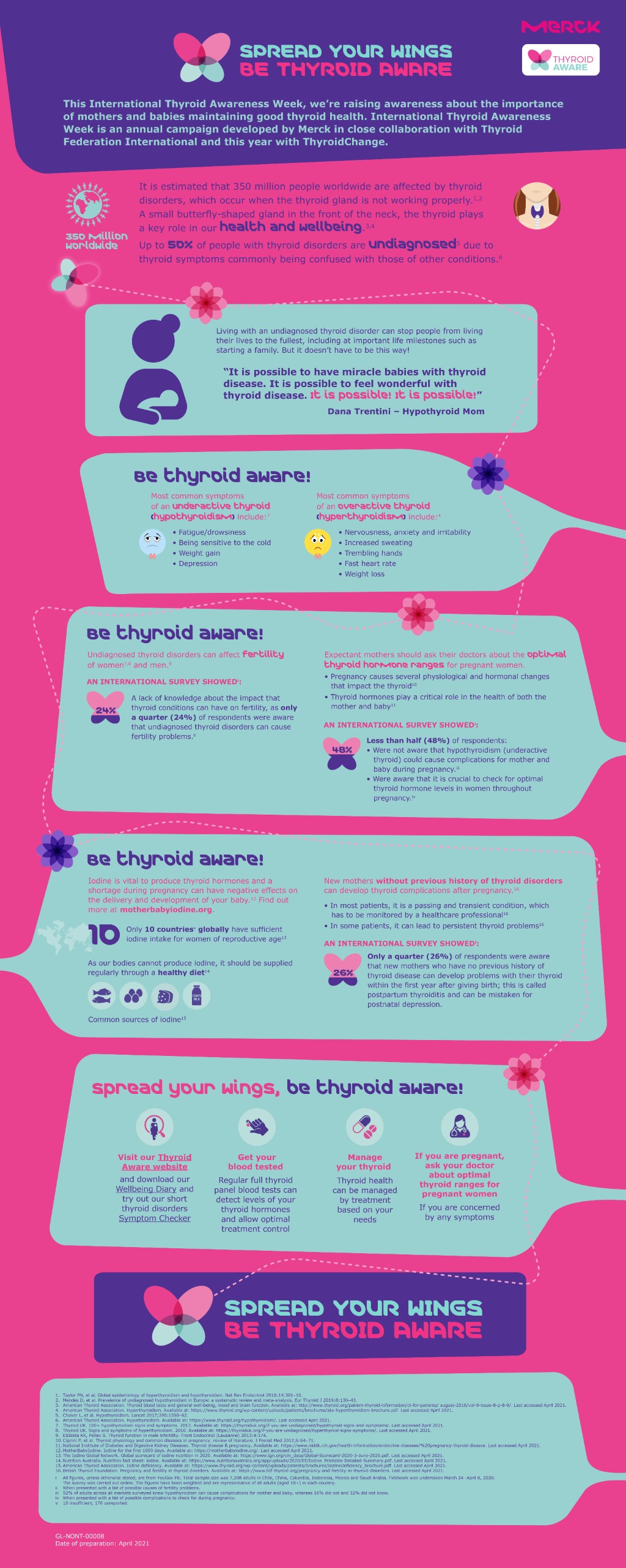 Our ‘spread your wings’ infographic helps people to be thyroid aware. Read and share to spread awareness about the impact of thyroid disorders on mothers and babies and the common symptoms.