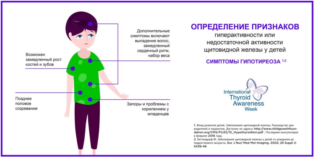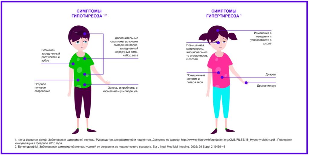 Гормоны щитовидной железы играют критически важную роль для развития детей, созревания нервной системы, роста костей и зубов.1 Они регулируют обмен веществ, функции многих органов, процессы полового созревания.1 Поэтому важно, чтобы родители знали и могли вовремя распознать симптомы заболеваний щитовидной железы. Своевременное лечение помогает избежать отдаленных последствий и осложнений.1